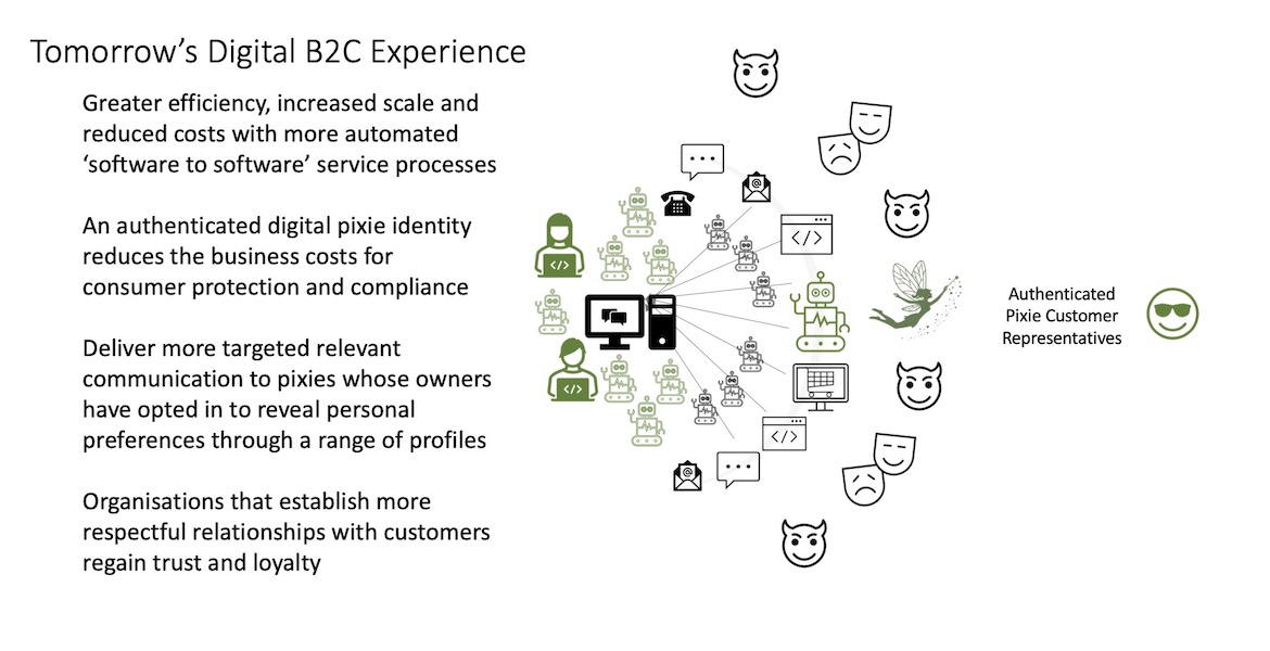 Pixies are digital natives that can talk to service channel interfaces and take over the data-entry and service management work for consumers - and they don't get bored or frustrated! Even better, pixies can surprise and delight with new service experiences and suggestions that remove the need to search for alternatives.